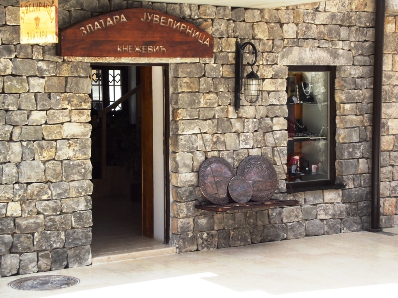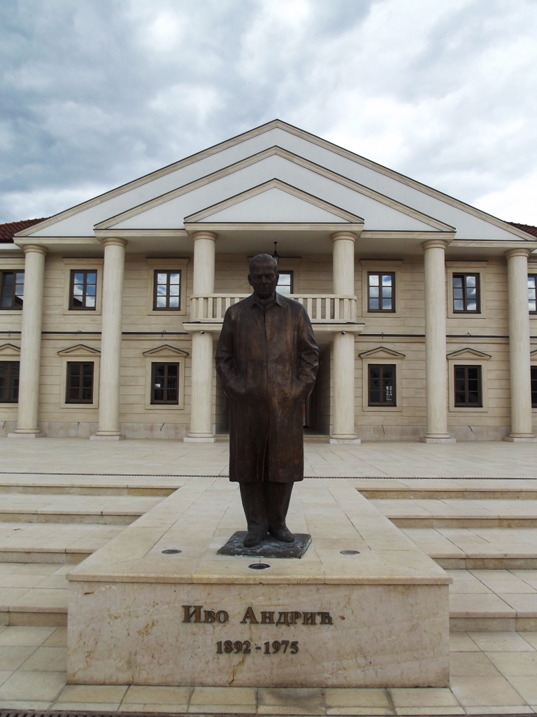 Na ulasku ćete pronaći prodavnicu suvenira (koji nisu nimalo jeftini, i za cifru manju od 10 KM nećete kupiti skoro ništa osim razglednice) i likovnu galeriju, te zlatarsku radnju i niz poslovnih prostora namjenjenih bankama i teleoperaterima. Malo dalje niz ulicu je lijepo dotjerana knjižara, koja upotpunjuje utisak da ste svarno došli na adresu gdje su kultura i umjetnost na prvom mjestu. Građevine koje opasavaju pomenutu ulicu su potpuno stilski uklopljene i mješavina su mediteranskog, zapadnjačkog i orjentalnog stila gradnje, baš kao i većina naših gradova, s tim što Andrićgradu ne nedostaje plan gradnje i sve je upakovano na idealan način. Neodoljivo imate osjećaj da ste u “starini”, mada na svakom koraku udišete “miris” novog. U tom momentu mi pada na pamet koliko je do sada pronevjereno novaca u Republici Srpskoj i iako je kojim slučajem takvih “radnji” bilo i u ovom poduhvatu, “alal vera”! Nikada nisam vidio ljepše pronevjeren novac (ako ga, ponavljam, ima u ovom slučaju). Dalje se na knjižaru nadovezuje bogata građevina u kojoj je smješten bioskom u kome, gle čuda, stvarno imaju filmske predstave. Ja, kao stanovnik Trebinja, uzdahom sam prokomentarisao ovu činjenicu. Bioskop, preko puta koga je “Gradska kafana” sa ljetnom baštom, naslanja se na centralni trg na kome dominira spomenik Ivi Andriću. Nobelovac u mantilu, sa pijadestala, posmatra ulicu kojom smo prošli, čini mi se vidno zadovoljan Kusturičinom idejom “njegovog grada” koju neumorno sprovodi u djelo.