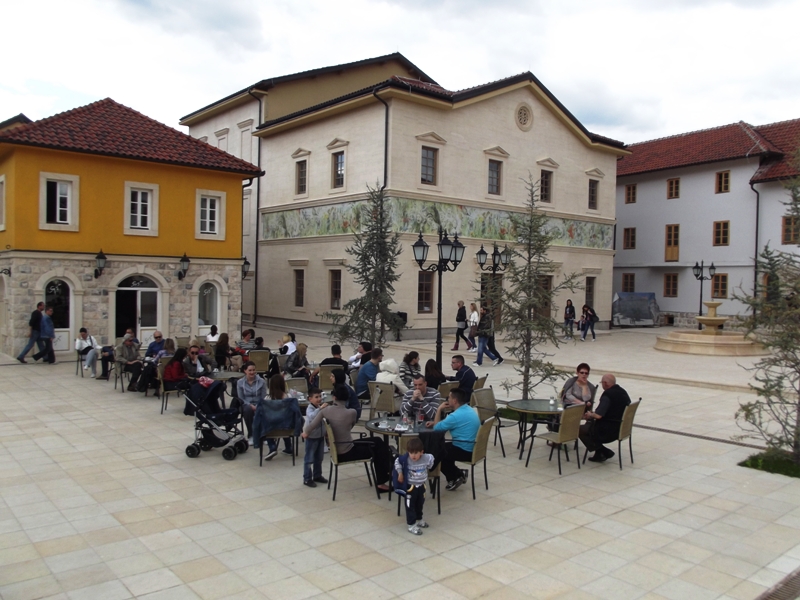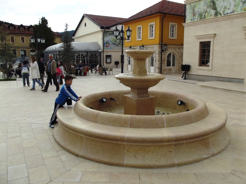 Pauzu uz ručak smo napravili u pivnici koja se nalazi uz sami trg, sa lijeve strane uz fontanu. Tu već možete da uživate i u ljetnoj bašti koja se nalazi tik uz obalu Drine, a ukusna hrana po veoma pristupačnim cijenama još je jedno od prijatnih iznenađenja na ovoj našoj maloj ekskurziji. Nije Andrićgrad, naravno, ni u pola dovršen ali ovo što je do sada urađeno predstavlja jedan od najvećih poduhvata gradnje na ovim prostorima od završetka rata. Impozantne su građevine koje su se utkale u dovršenu ulicu i trg, i nepobitno dokazuju da energija jednog čovjeka može da učini mnogo toga. Naravno, mnogi će reći da ničega tu nebi bilo da se nije “vladar” pojavio kao sponzor, ali se meni tada otima gorak utisak da su mnogi imali pomenutog za sponzora, ali ništa pametno uradili nisu.